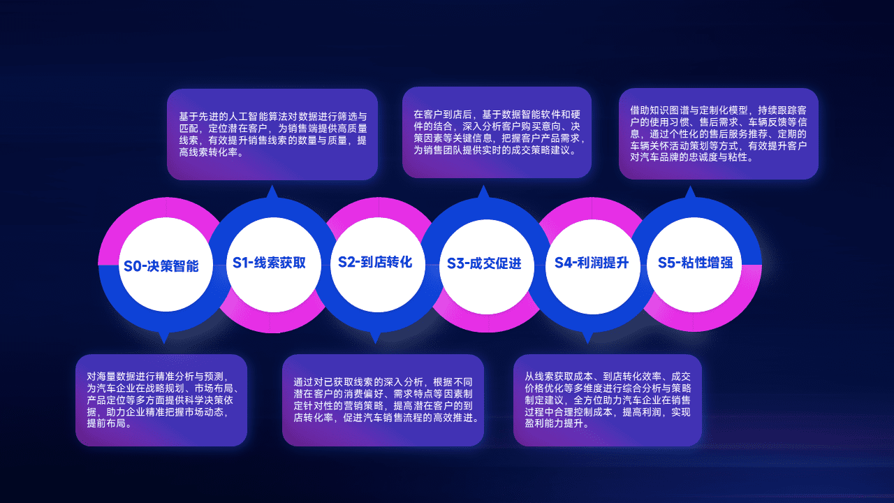 通过拓宽潜在客户来源、、、优化线索分配并提高到店转化率,,,,以增强销售效率。。。同时,,,,利用线索数据不断优化分析模型,,,,有效提升转化率,,,扩大营销影响力。。